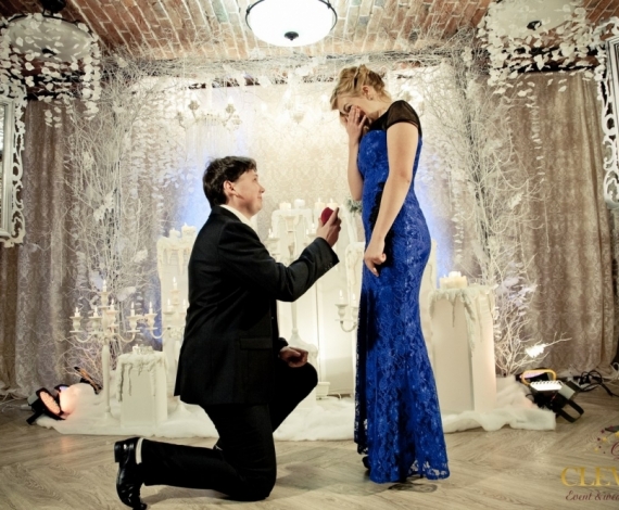| Освідчитись у День святого Валентина вирішив Петро. Йому пощастило, що у цей день ми проводили проект для "Час закоханих". Освідчення відбулось в романтичній атмосфері, яка вразила майбутню наречену. Петро так хвилювався, що ледь не забув слова, які хотів сказати...І ось ми стали свідками ще однієї історії кохання довжиною в життя. |